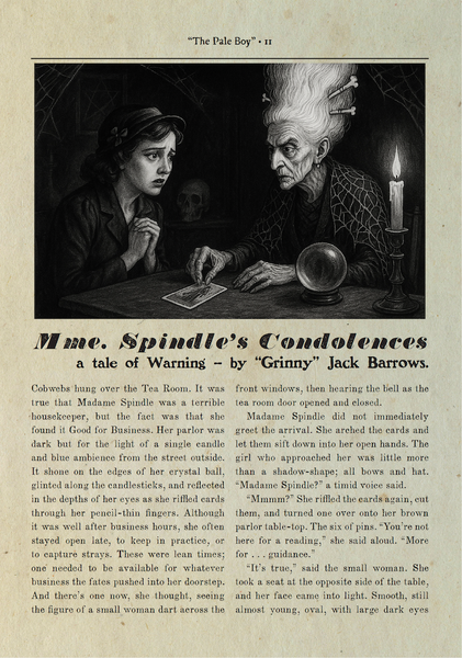 Step into the shadowed streets of Dreary, Maine, and meet The Pale Boy, a feral child who seems ageless and loves Halloween! With 16 yellowed pages of lurid occurrences, authentic details and illustrations, GRUESOME STORIES delivers the thrill of a classic pulp magazine right to your screen.