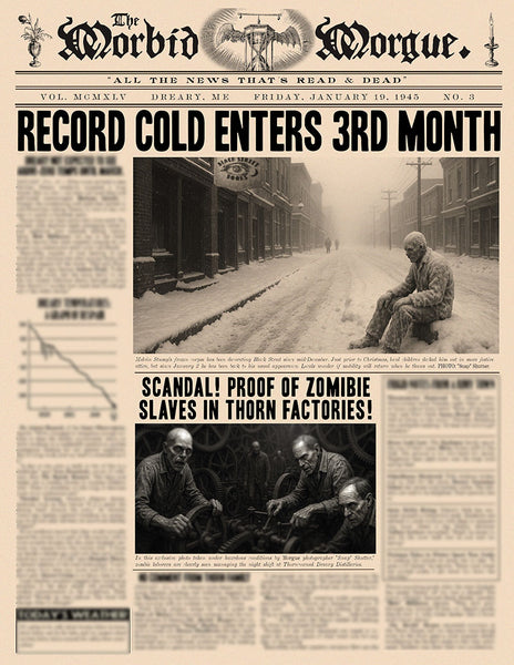 It's 1945 in Dreary, Maine. Although the war has barely grazed its doorstep, other issues keep rearing their ugly heads, as issues have a habit of doing. The winter months are both cold and fierce in Maine, and our Dreary denizens are getting the worst of it in the 15th year of the State's blockade of the town.